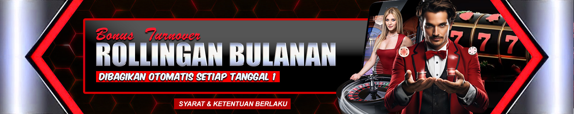 - Event Ini Berlaku Untuk semua permainan (Kecuali TOGEL), Dibagikan Bonus Rollingan Dari Hasil Permainan Periode Bulan Sebelumnya Yang Dihitung Dari Total Bettingan / TURNOVER.